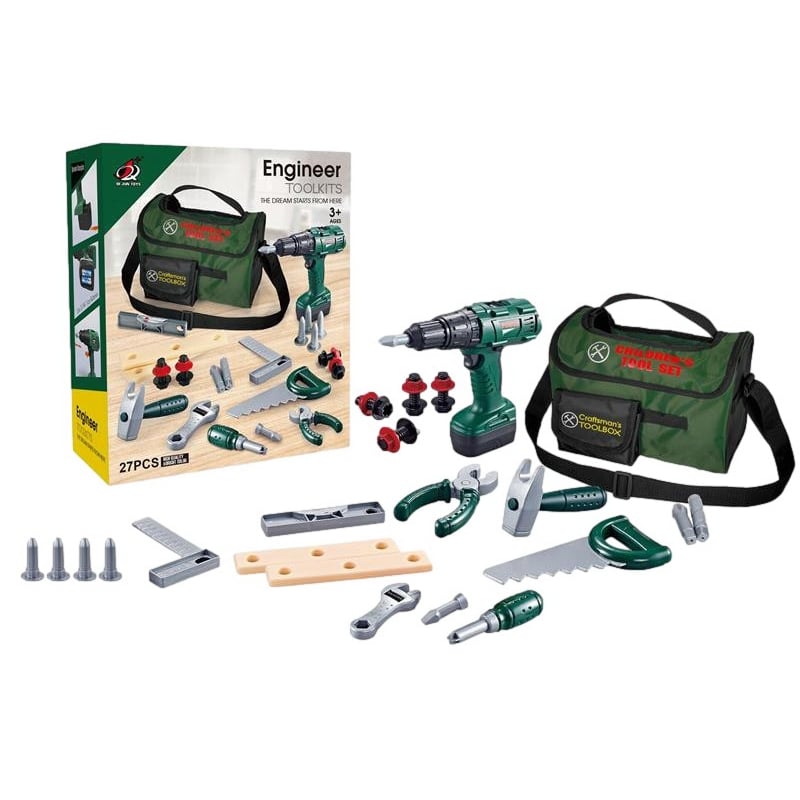 Pikkuammattilaisen työkalulaukku on tilava ja siinä on säädettävällä olkahihna. Pakkaus sisältää yhteensä 27 osaa: muun muassa paristokäyttöisen leikkiporan, sahan, ruuvinvääntimen, vasaran ja runsaasti ruuveja ja muita työkaluja. Leikki työkalut on valmistettu muovista. Mahtava lahjaidea pikkutimpureille!