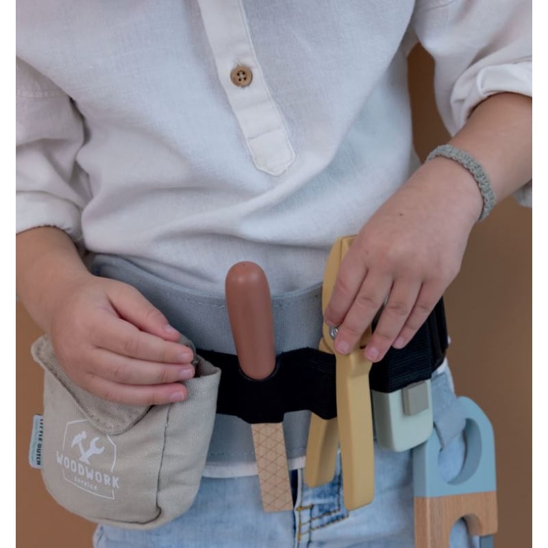 Tämä lelu inspiroi lasta mielikuvituksellisiin leikkeihin ja päästää sisäisen rakentajan valloilleen. Leikkityökalut ovat valmistettu puusta. Työkaluvyö on säädettävä ja siinä on avattava tasku ja paikkoja työkaluille.