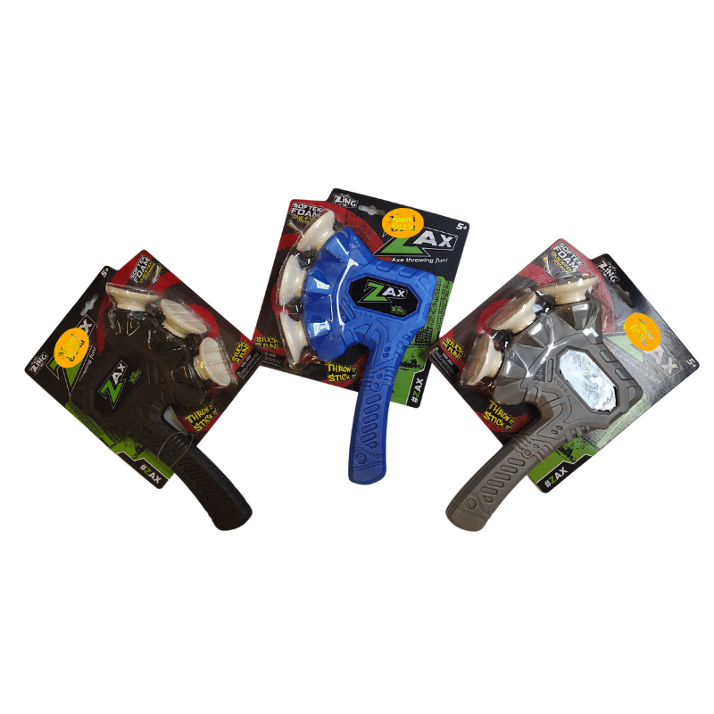 Zax-pehmokirves on tehty heitettäväksi! Vaahtomuovin ja imukuppien ansiosta kirves kiinnittyy helposti lähes kaikille pinnoille ja on samalla helppo irrottaa. Kirveellä voi leikkiessä harjoitella heittotarkkuutta.
