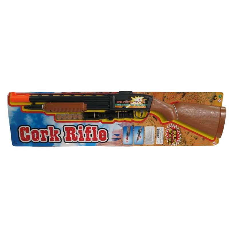 Perinteinen korkkikivääri pumpattavalla latauksella. Mukana kiikaritähtäin ja 6 kpl ammuksia.