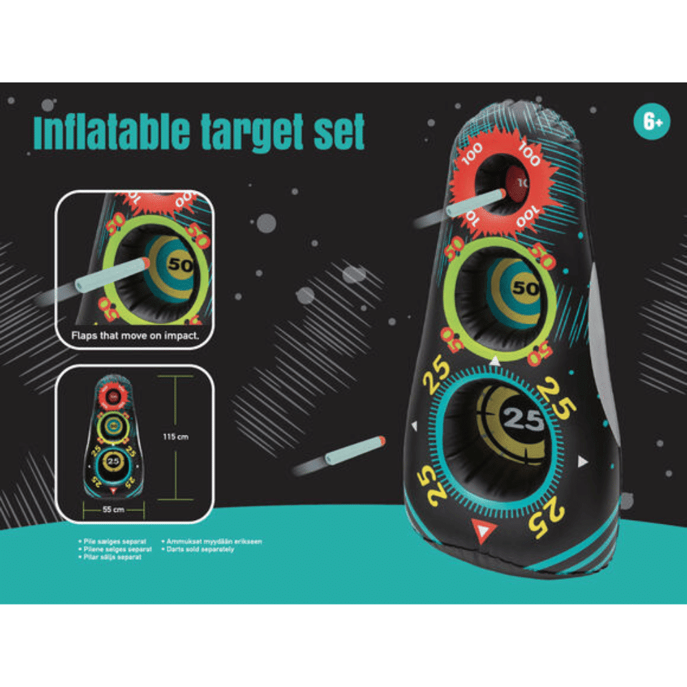Maalitaulu puhallettava 115 cm on nyt saatavilla! Tämä tyylikäs puhallettava ammuntataulu sopii täydellisesti tähtäyksen harjoitteluun. Kuvauslevyssä on kolme erikokoista salamaa ja läppä, jotka liikkuvat törmäyksessä. Ammuntakiekko on helppo täyttää ilmalla ja sen mukana tulee vesisäiliö, joka muodostaa vakaan pohjan.