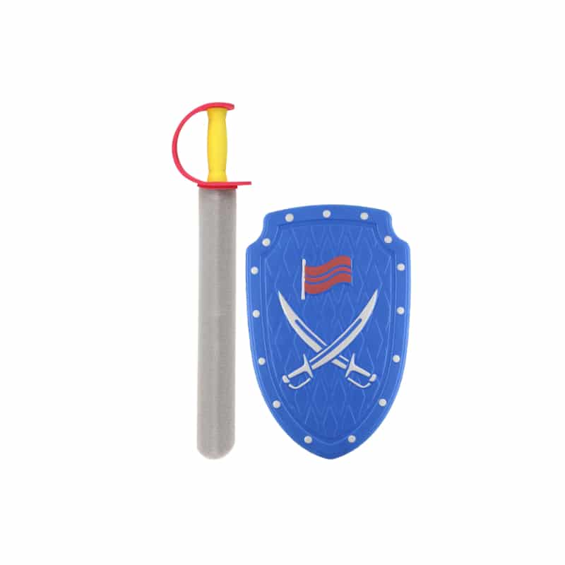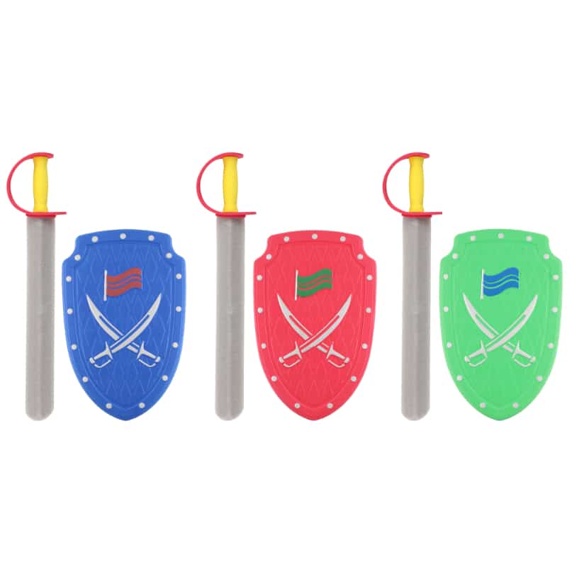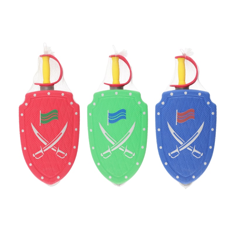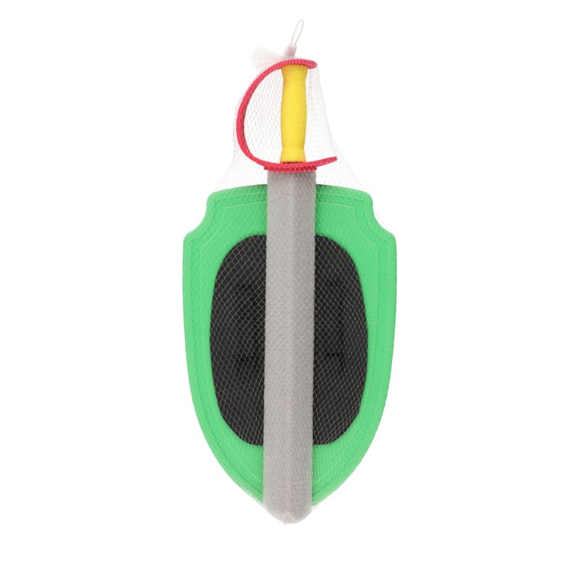 Hieno ja turvallinen pehmo miekka ja kilpi leikkisiin taisteluihin! Voit kiinnittää kilven käteesi siinä olevalla remmillä. Materiaali on solumuovia. Lajitelmassa on kolme eri väriä: punainen, vihreä ja sininen.