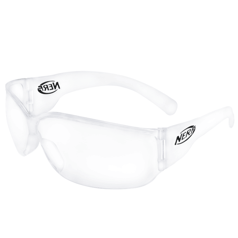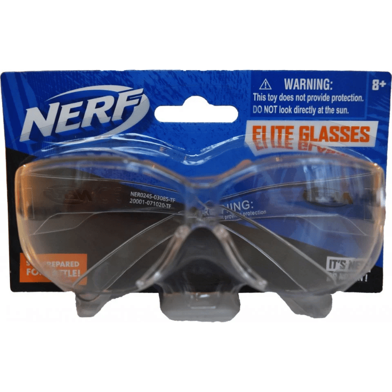 Ole valmis jokaiseen taisteluun kirkkailla Nerf Elite -suojalaseilla! Yksi koko, sopii kaikille. Pakkaus sisältää yhdet suojalasit.