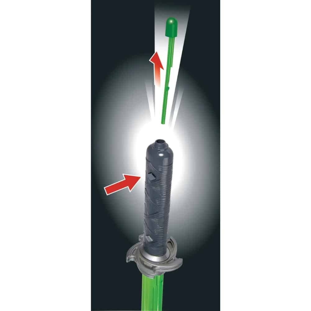 Täydellinen ninjasetti nuorille hurjapäille. Miekassa on hienot valo ja ääni -tehosteet. Miekka myös ampuu pehmeäpäisiä nuolia. Maskin saa säädettyä sopivaksi nauhalla. Miekan pituus on 60cm. 3 x 1,5 V LR44 (testiparistot sis.) 3+