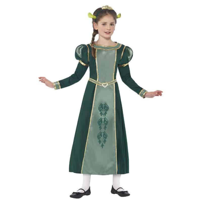Shrek-elokuvista tuttu prinsessa Fiona lastenasuna. Asu koostuu vihreästä pitkähihaisesta mekosta sekä tiaralla ja korvilla varustetusta hiuspannasta.