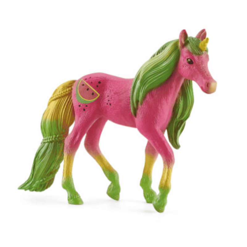 Melon, suloinen Schleich® bayalan® yksisarvisvarsa, kuuluu 12 pienen yksisarvisen laumaan, joka elää piilotetussa hedelmäpuutarhassa bayalassa. Sillä on ihana melonitatuointi!