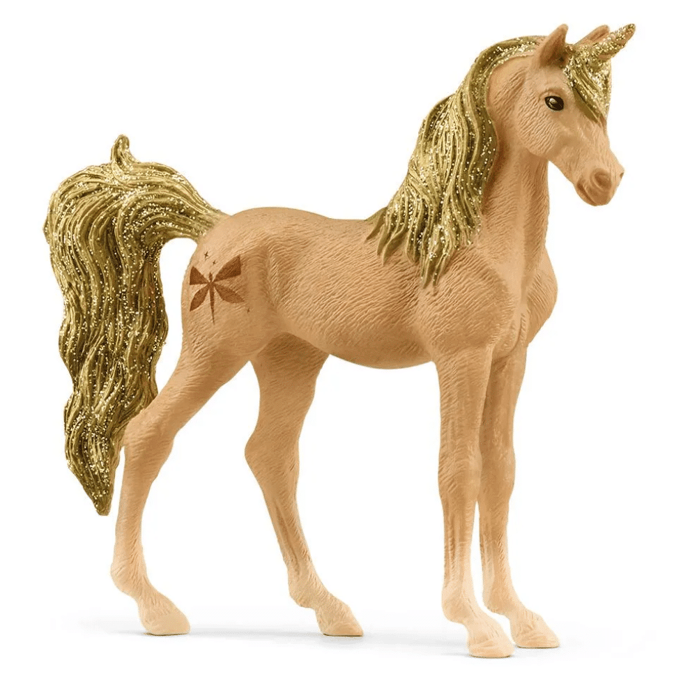 Schleich meripihkayksisarvinen 70766 keräiltävä meripihkayksisarvinen on niin upea: sillä on loistelias, kiiltävän kultainen harja ja samanvärinen sudenkorentotatuointi sen beigen värisessä kyljessä. Sen harja ja häntä ovat kuin kultainen vesiputous. Myös sen pieni kultainen sarvi kimaltaa. Mikä upeinta: se on keräiltävä yksisarvinen. se elää yhdessä muiden yksisarvisten kanssa koko BAYALA®-maailman kauneimmassa laumassa.