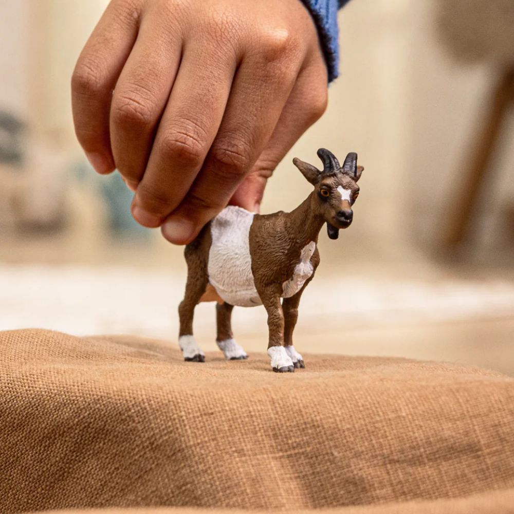 Schleich Vuohi on realistinen, käsinmaalattu hahmo, joka tuo maatilan elämän lasten leikkeihin. Yksityiskohtaiset piirteet, kuten aidon näköiset sarvet ja karvapeitteen tekstuuri, tekevät siitä luonnollisen näköisen. Kestävä ja turvallinen materiaali sopii aktiiviseen leikkiin, ja hahmo täydentää erinomaisesti muita Schleichin maatilan eläimiä.