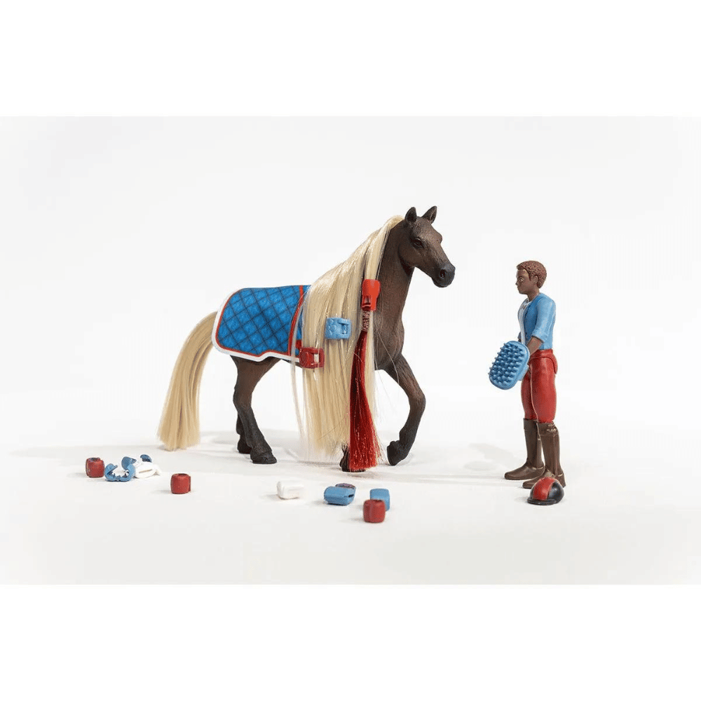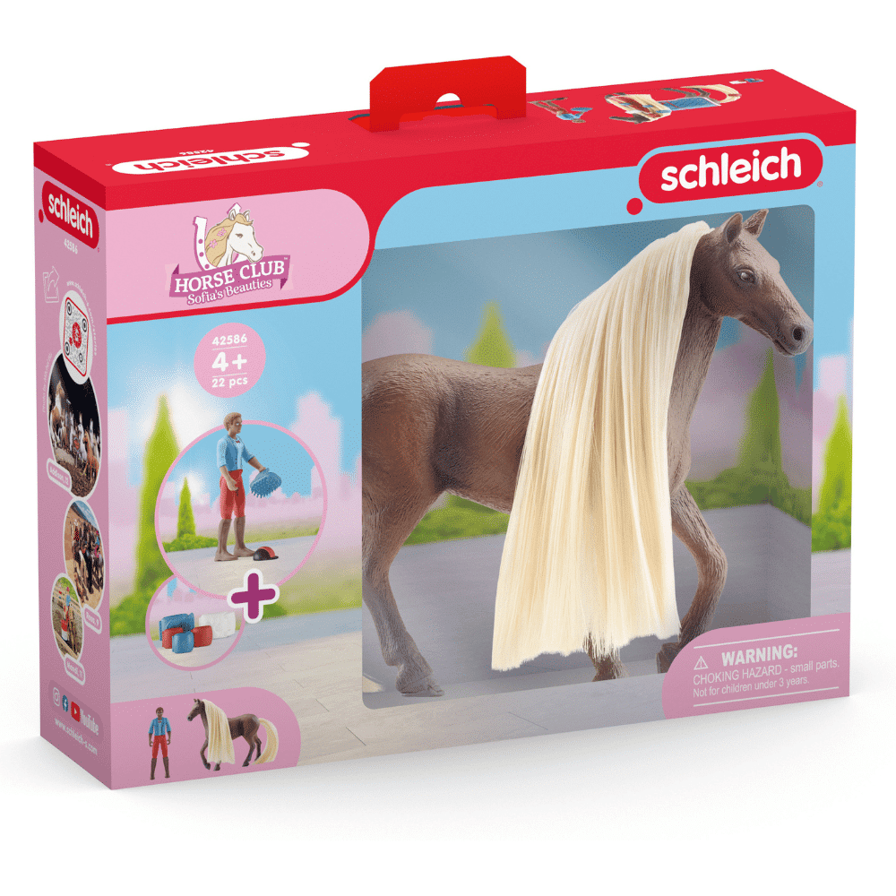 Ja ensimmäisiksi tulivat… Leo ja Rocky schleich® HORSE CLUB Sofia’s Beauties -sarjaan kuuluvasta aloituspakkauksesta. Tämä kuulutus tulee sinulle vielä tutuksi. Se on selvää, sillä taipuisa Leo-hahmo ja sen kalliovuortenhevonen Rocky, jolla on kammattava harja, ovat voittoisa tiimi.