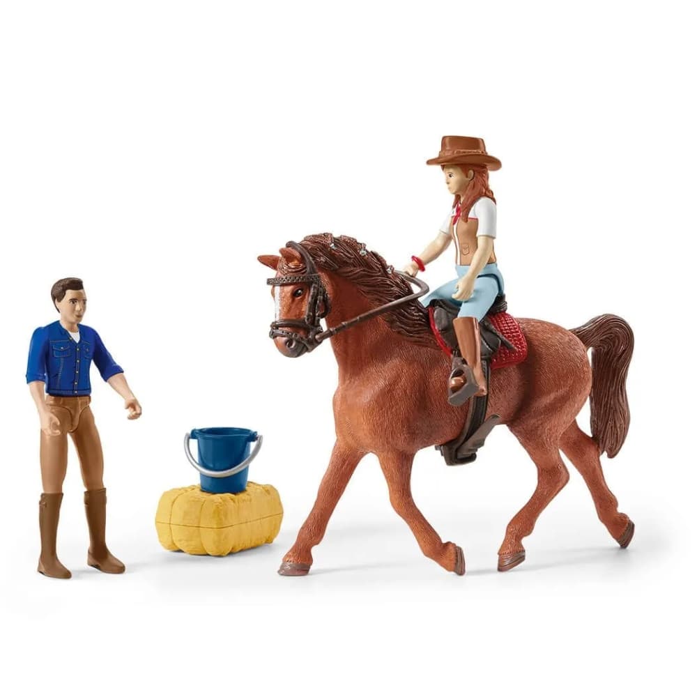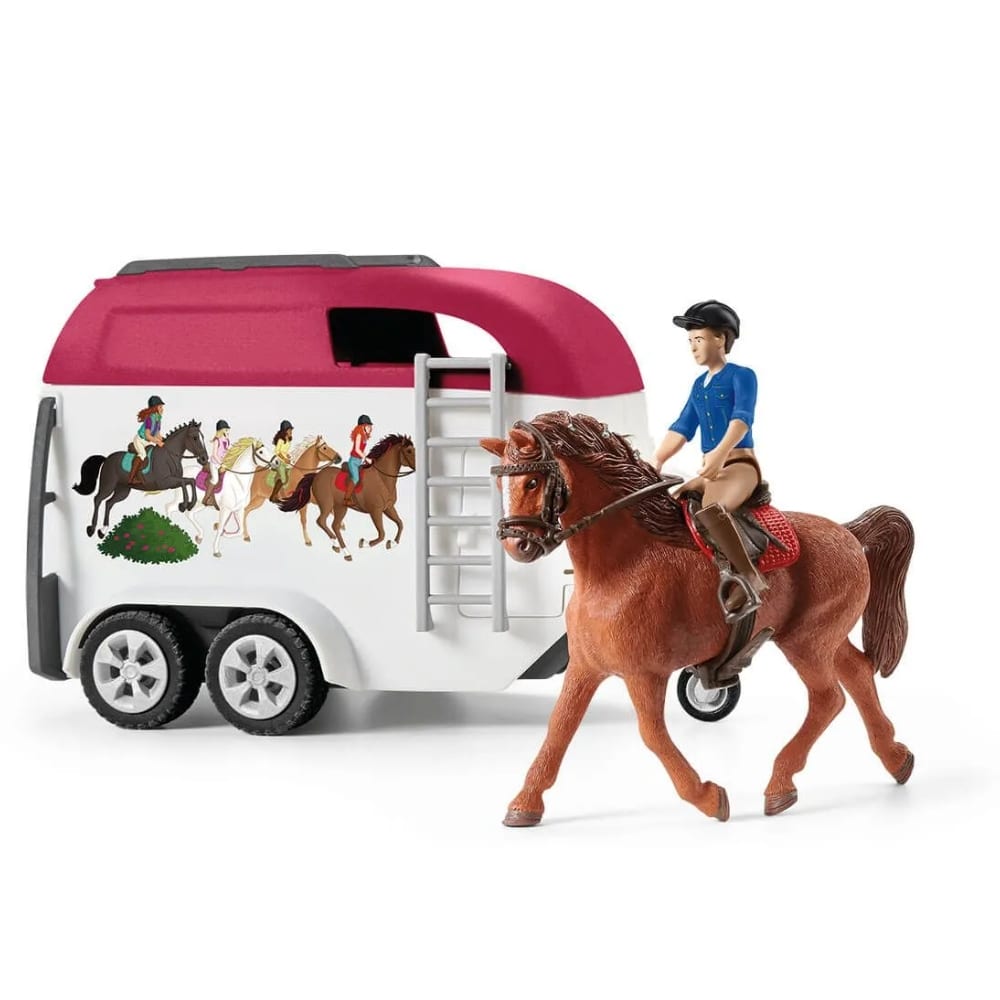 Schleich® HORSE CLUBin seikkailu autolla ja hevosvaunulla vie Hannah’n ja hänen isänsä ensimmäisiin isoihin kilpailuihin. Hannah ja hänen isänsä kokevat upean seikkailun schleich® HORSE CLUBin autolla ja hevosvaunulla! Monipuoliset toiminnot tarjoavat lukuisia leikkimismahdollisuuksia.