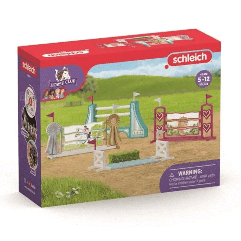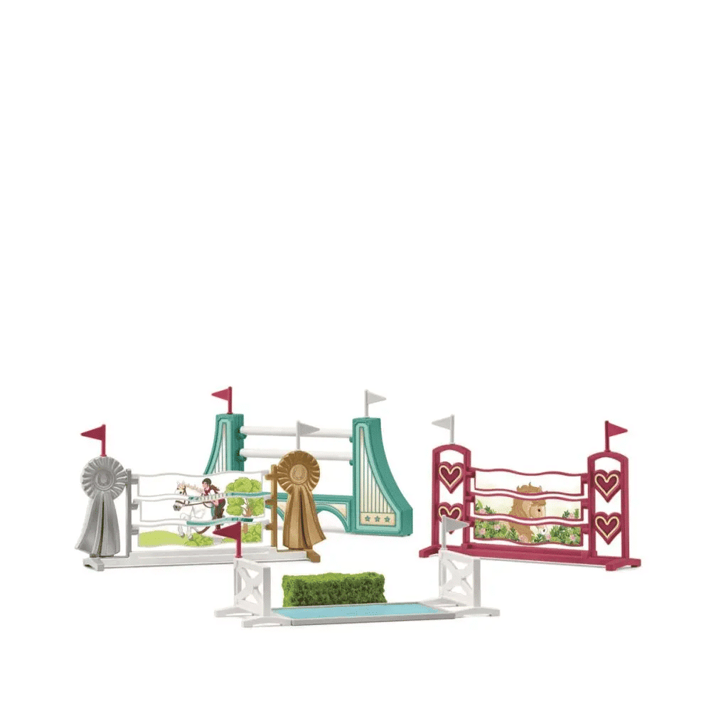 Kilpaileminen on hauskaa, mutta estekilpailun voittaminen on vielä hauskempaa! schleich® HORSE CLUB -esteillä onnistut kummassakin. Tehokkainta harjoittelua varten estepuomien korkeutta voi säätää asteittain.