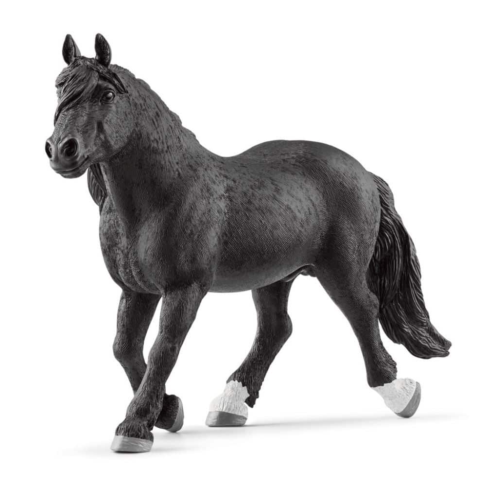 Valkoiset sukat takajaloissaan muuten pikimusta noricuminhevosori näyttää todella ystävälliseltä. Eikä ihme: nämä hevoset tunnetaan mukavasta luonteestaan. Onko se jo valloittanut sydämesi? Noricuminhevonen seisoo pienenä mutta sitkeänä, eikä sitä ole helppo yllättää aitauksessa.
