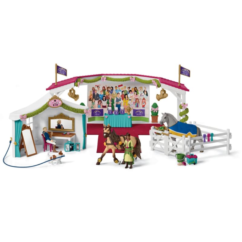 Nyt on show’n aika! Schleichin iso hevosnäyttely areena takaa tuntikausiksi hauskuutta. Katso kuinka yleisössä hurrataan kun esiinnyt hevosesi kanssa. Tee näyttäviä liikkeitä ja saat kaikkien huomion esitykseesi. Ehkäpä jälkeenpäin lentää ruusuja!