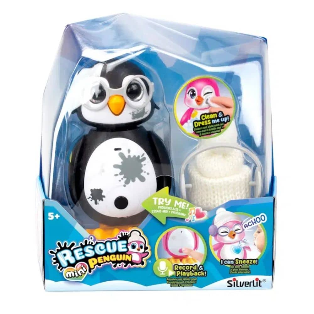 Rescue Penguin Mini on elektroninen interaktiivinen lemmikki. Puhdista, pue, ruoki ja hoivaa omaa pientä pingviiniä ja näet sen ainutlaatuiset ominaisuudet. Ääni, valo ja tallennustoiminnot. Mukana hattu, kuulokkeet ja lasit. Paristot 3xAAA (sisältää testi paristot) Ikäsuositus 5+