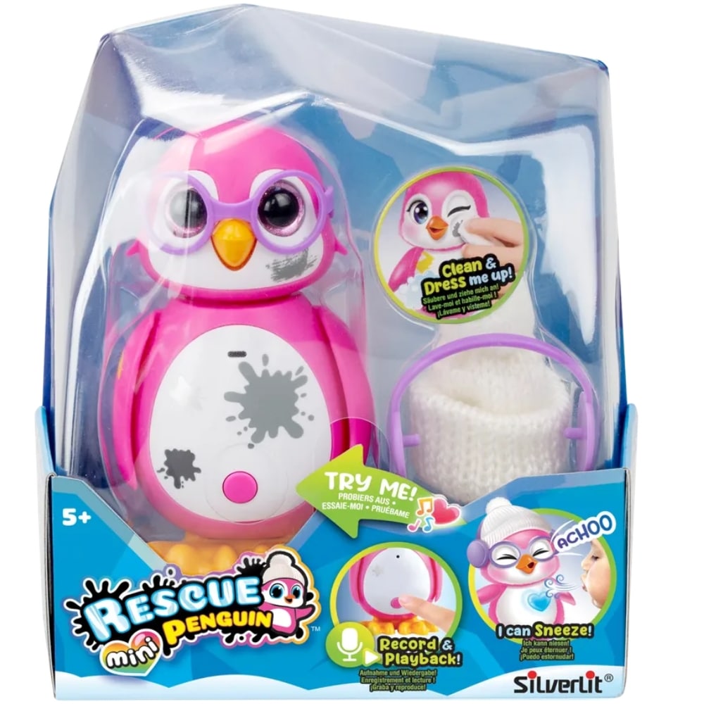 Minikokoinen pingviini on 11 cm korkea versio suositusta Rescue Penguin leluista. Mini Rescue Pingviini on interaktiivinen lemmikki johon voi luoda yhteyden hoitamisen kautta. Kun pingviinin puhdistaa tahroista, paljastuu sen hehkuva sydän. Söpö pingviini tallentaa ääntä ja arvailee mielialoja. Ainutlaatuinen lelu, joka tuo iloa ja mukavuutta päiviin. Tarvitsee paristot (1 x AAA, sisältyy testipatterit). Hahmon mitat noin 11 x 6,5 x 4,5cm. Ikäsuositus: 5+.
