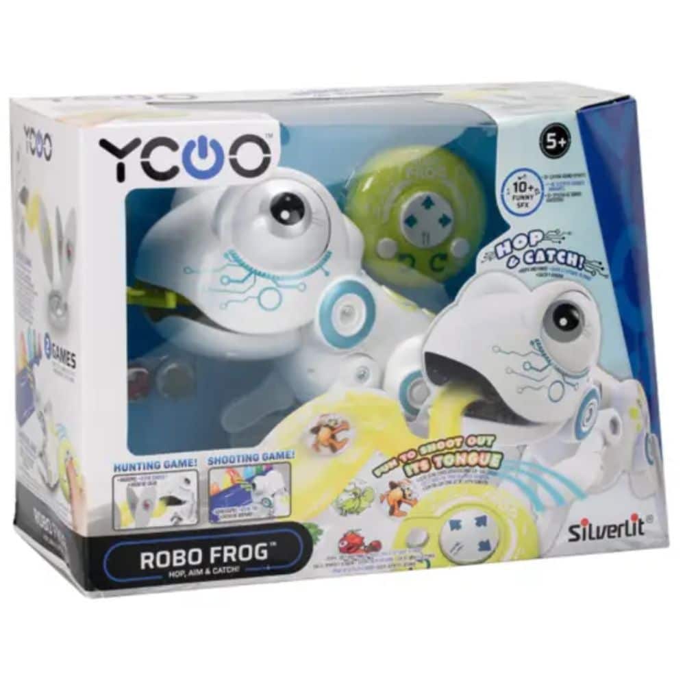 Robotti sammakko Ycoo Silverlit on hyppivä, kääntyvä ja pyydystävä robottisammakko kymmenellä uniikilla ja hauskalla ääniefekteillä. On aika pitää haukaa uuden ystäväsi kanssa. Pakkaus sisältää robottisammakon, kolme ruokakolikkoa, ohjaimen ja maalitaulun.