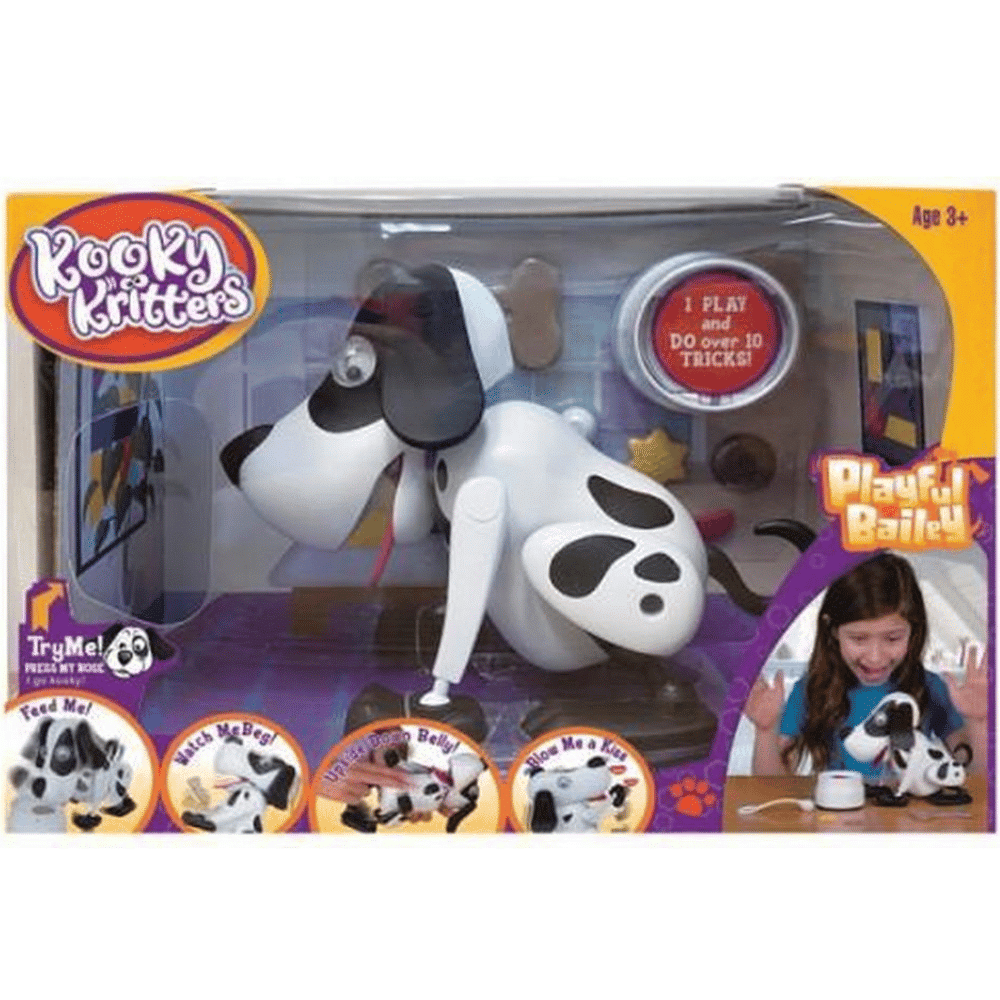Robottikoira Kooky Kritterz Bailey on haukkuva, leikkisä ja kävelevä interaktiivinen koirasi. Bailey on aivan kuin oikea koira. Se todella leikkii, syö, kerjää, ottaa vastaan pusuja ja paljon muuta. Interaktiivisesta lelusta lähtee yli 30 ääntä! Koirarobotti on täydellinen syntymäpäivä- tai joululahja lapselle, joka etsii uutta pentukaveriaan.
