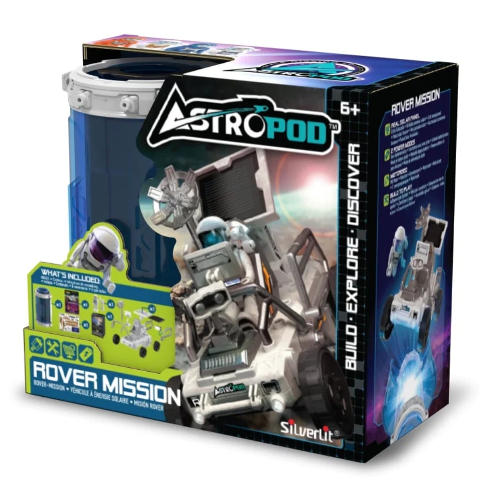 Astropod Rover Mission avaruusleikkisetti – Valmistaudu äärimmäiseen seikkailuun tämän mahtavan leikkisetin avulla, josta löytyy puuhaa pitkäksi aikaa. Avaa säiliö saadaksesi tarvikkeet. Pakkaukseen sisältyy: säiliö, hahmo, ajoneuvon osat, kortti, tarroja ja muuta. Kerää kaikki avaruus-setit. Ikäsuositus: 6+ vuotta.