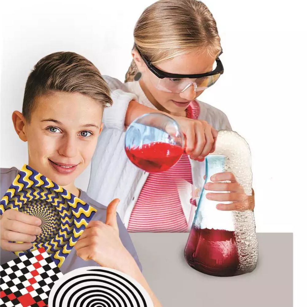 Sisältää yli 110 kemian ja fysiikan koetta, välineet, suojalasit ja kuvitetut ohjeet.