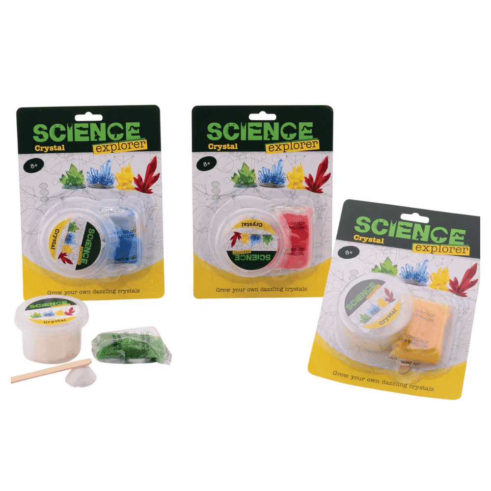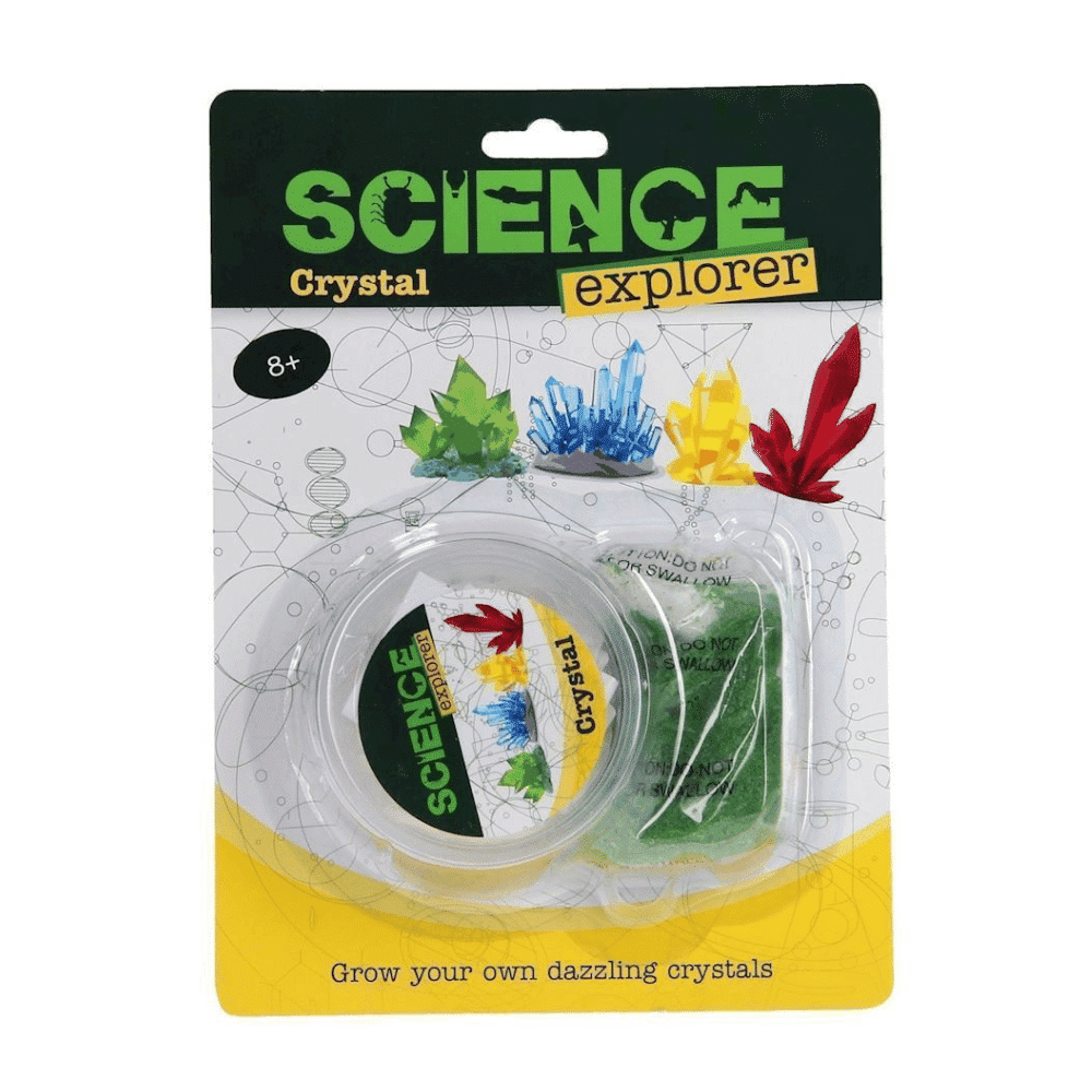 Hauska tiedesetti, jolla voit valmistaa erivärisiä kristalleja. Sekoita ainekset veteen ja 10-12 tunnin aikana voit havaita kristallien kasvavan! Kristallin kasvaminen valmiiksi kestää noin 7 päivää, joten ole kärsivälinen!
