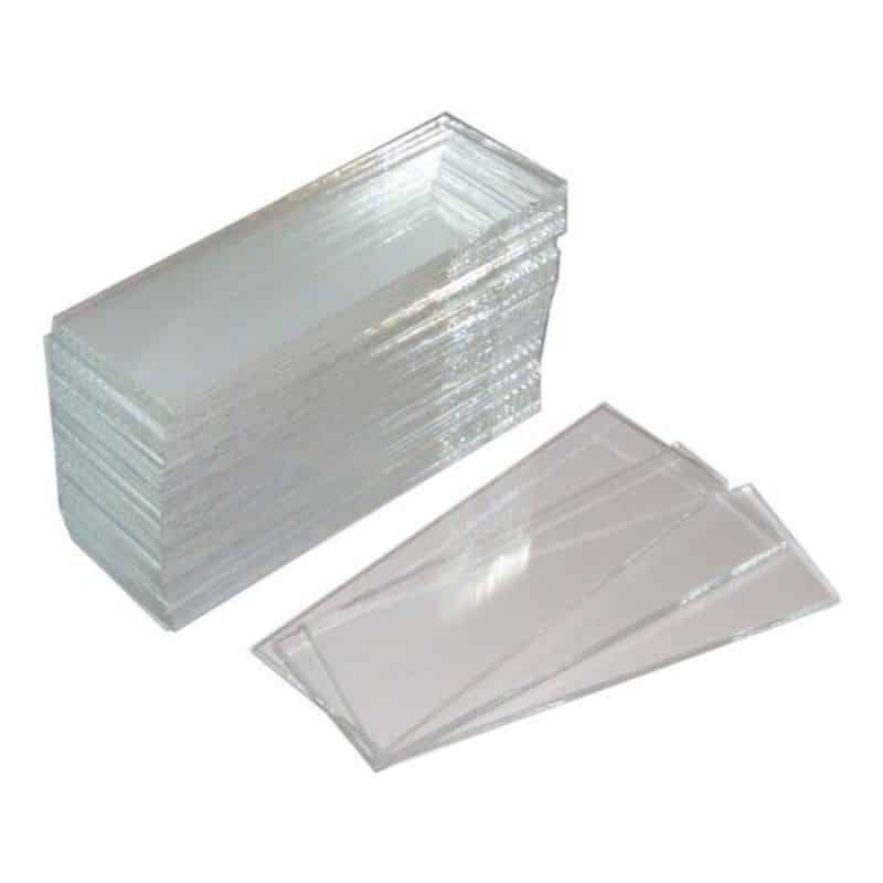 Pakkaus sisältää viisi 76×26 mm koon aluslasia.