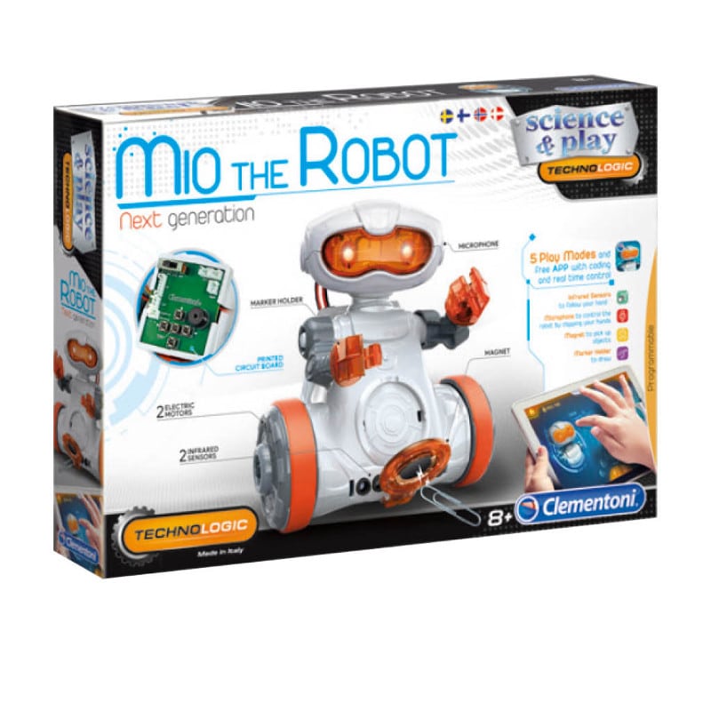 Ainutlaatuinen tiedepaketti, josta voit koota oikean robotin. Mio robotilla on paljon komponentteja ja ilmainen sovellus. Löydä robotiikan ja elektroniikan mielenkiintoinen maailma!
