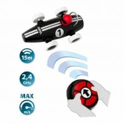 Vruum vruum! Brion kauko-ohjattavan kilpa-auton musta kori ja virtaviivainen muotoilu takaavat tuntikaupalla hupia nopeiden autokisojen parissa. Lelu sopii täydellisesti 2-vuotiaille, sillä auton ohjaaminen kauko-ohjaimen yhdellä painikkeella käy helposti muutaman harjoituskierroksen jälkeen. Tavoitteena on kehittää lasten näppäryyttä ja ohjaustaitoa hauskalla ja mieleenpainuvalla tavalla.