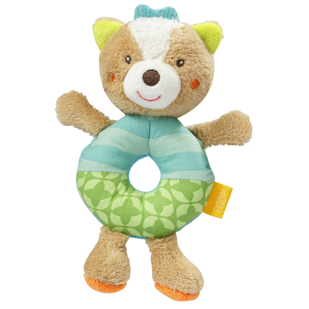 Suloiset pehmeät helistinhahmot, joiden renkaanmuotoiseen vartaloon vauvan on helppo tarttua itse. Pehmohahmon sisällä helistin, joka helisee kivasti lapsen heilutellessa lelua. Lelun materiaaleja on mukava tunnustella ja ”hypistellä” pienillä kätösillä.