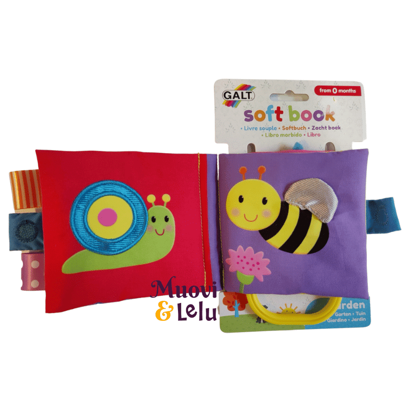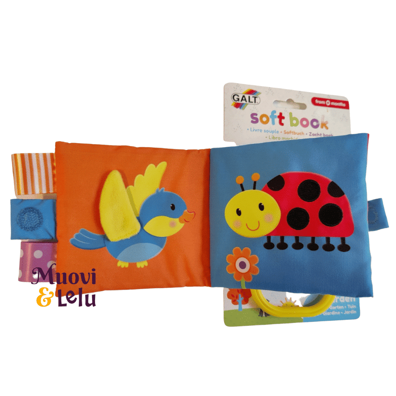Tässä vauvan ensimmäisessä värikkäässä kirjassa on hauskoja puutarha aiheisia kuvia ja rapisevat sekä pehmeät sivut, jotka kiinnostavat pieniä lapsia. Pehmokirjan saa roikkumaan rattaisiin tai kaukaloon mukana tulevalla muovirenkaalla. Turvallinen, ei myrkyllinen.