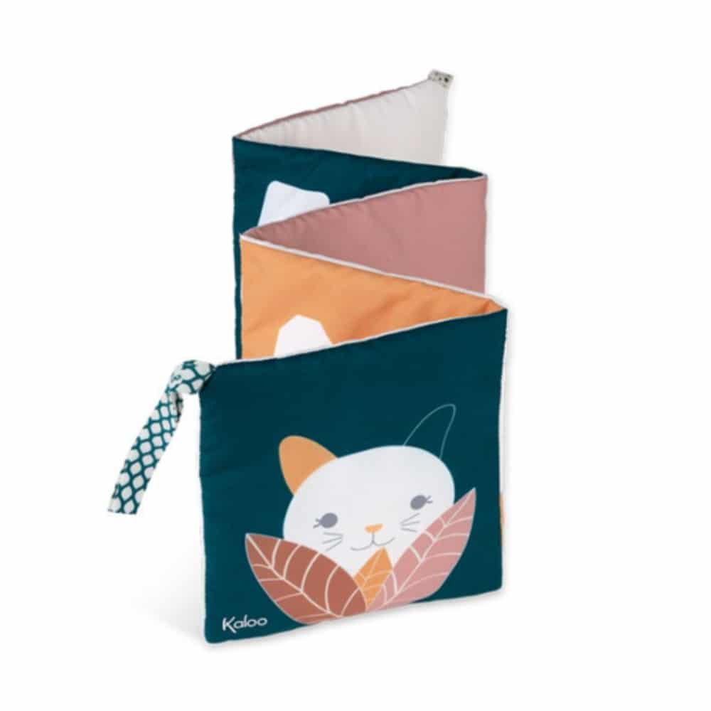 Pehmokirja taitettava Kaloo – Suloinen kaloo taiteltava pehmokirja tarjoaa stimulaatiota lapsen eri aisteille. Kirjan voi kiinnittää nauhan avulla vaikka pinnasänkyyn tai rattaisiin.