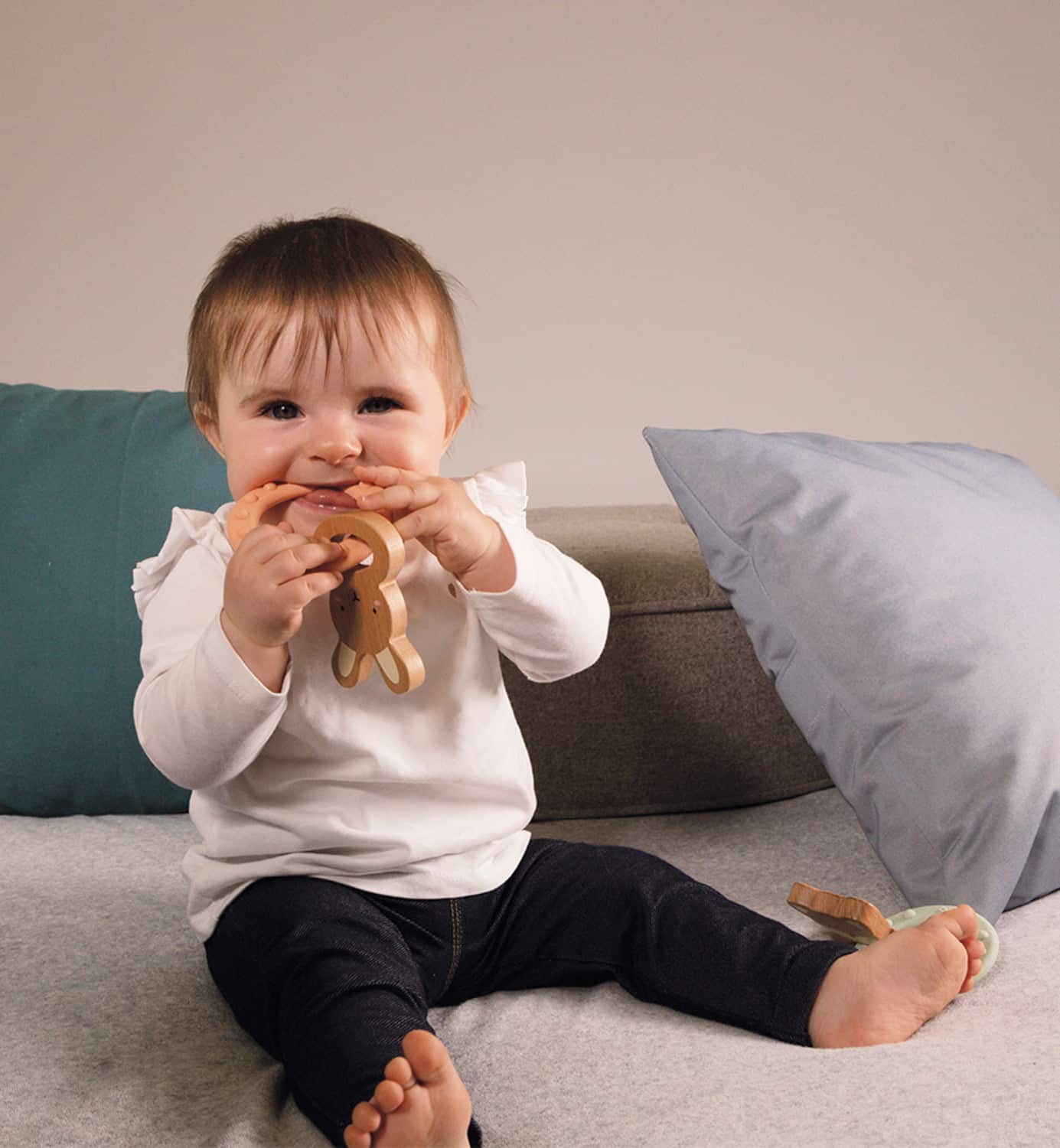 Puhkeamassa olevat hampaat saattavat aiheuttaa kutinaa ja kipua ikenissä. Kaloo Purulelu pupu helpottaa lapsen kutiavia ikeniä. Silikoninen rengas on miellyttävän pehmeä ja sen pinnan kuviointi stimuloi tuntoaistia. Renkaan muotoinen pururengas pysyy hyvin pienissä käsissä. Puinen pupun pää sulostuttaa pururengasta. Kaloo pururenkaassa on kauniit luonnolliset sävyt ja materiaalit.