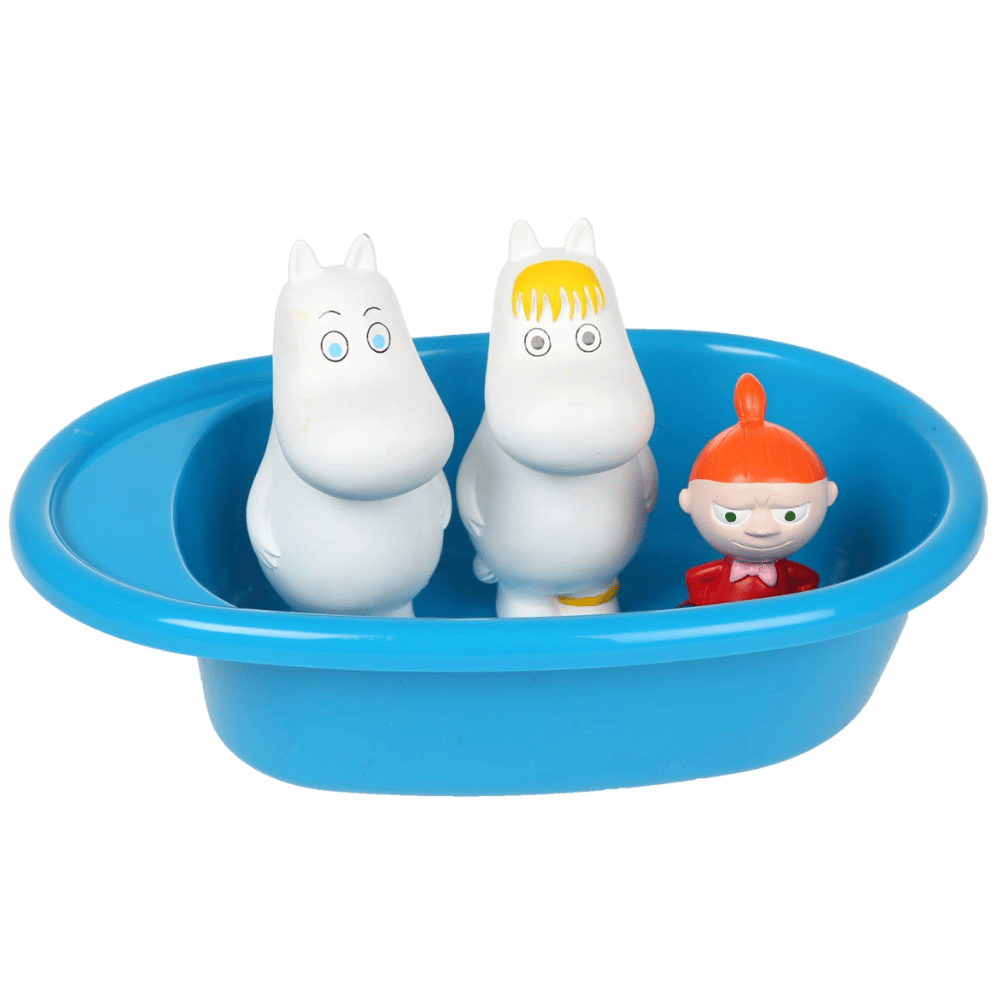 Muumi hahmot 3 kpl & amme on hauska kylpylelusetti vesileikkeihin. Mukana tulee amme ja kolme muumihahmoa. Jotta kenenkään ei tarvitsisi yksin peseytyä tai kylpeä niin Muumipeikko, Pikku Myy ja Niiskuneiti ovat aina valmiita vesileikkeihin. Muumilaakson kaverukset voi ottaa mukaan kylpyyn tai heitä voi kylvettää mukana tulevassa ammeessa.