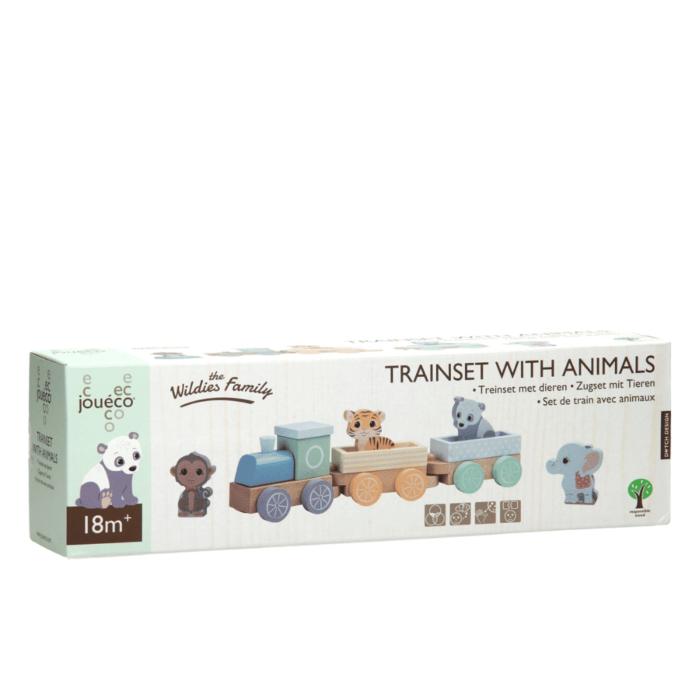 - Tuut tuut, sieltä lähtee The Wildies Familyn iloinen juna! Juna villieläimet Joueco koostuu erillisistä osista varustetusta veturista ja kahdesta makean pastellivärisen vaunusta.