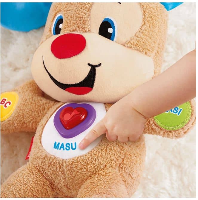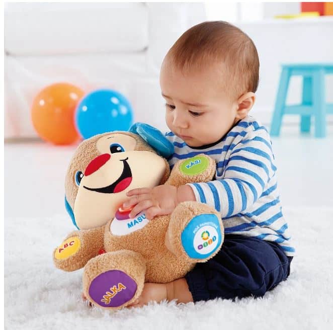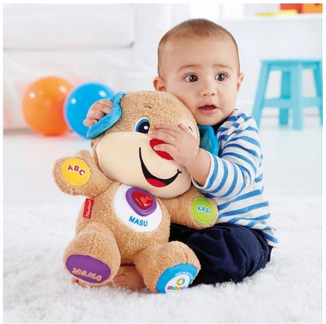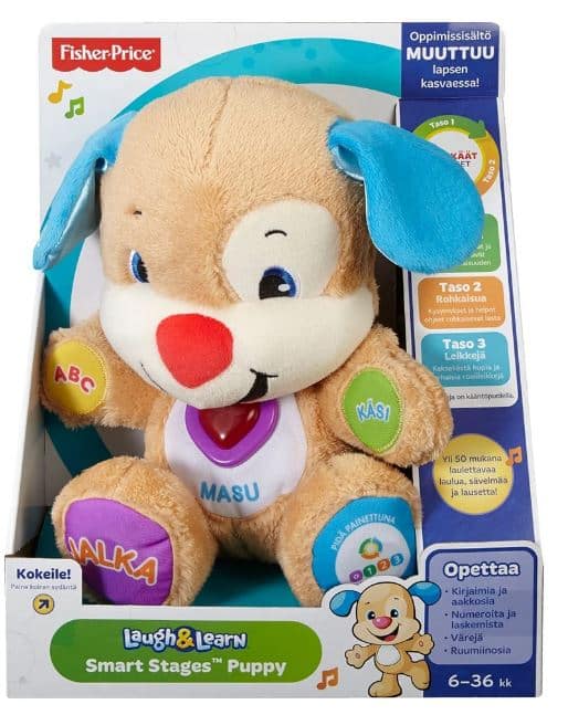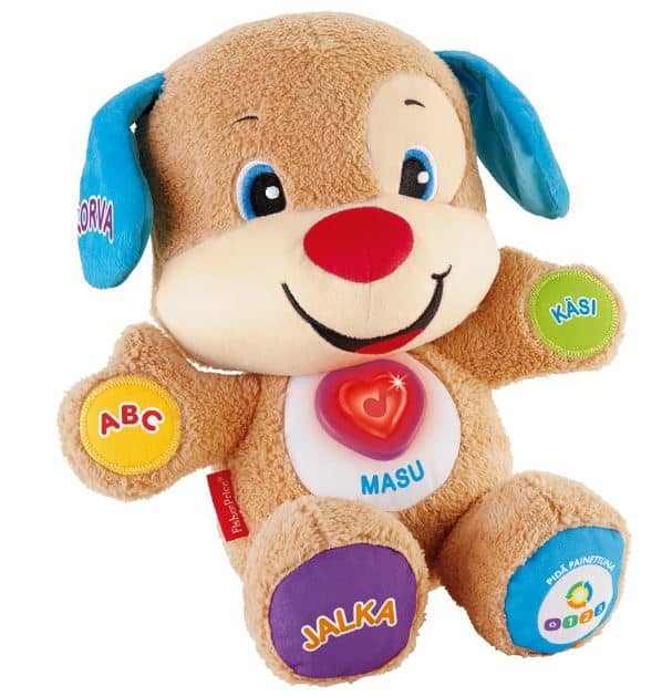 Tässä on vauvasi uusi paras ystävä! Koira on pehmeä, halittava ja valmis opettamaan pienokaista. Se vastaa vauvan kosketukseen lauluilla ja lauseilla, näin vauvasi oppii yli 100 ensimmäistä sanaa, kehonosia, värejä ja muotoja.