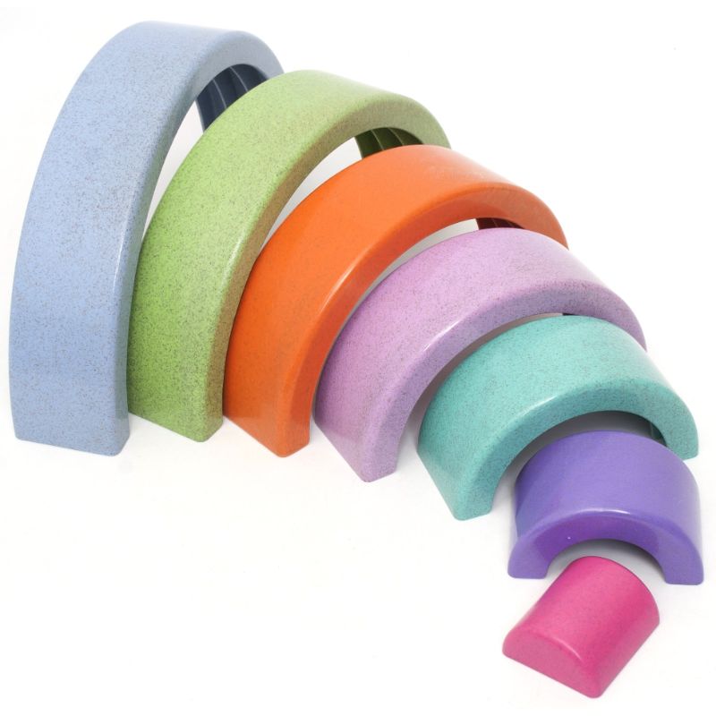Ympäristöystävällisesti valmistettu pinottava sateenkaari soveltuu yli kaksi vuotiaille lapsille. Lelussa on seitsemän eriväristä osaa, joilla voi tehdä hauskoja rakennelmia mielikuvitusta käyttäen.