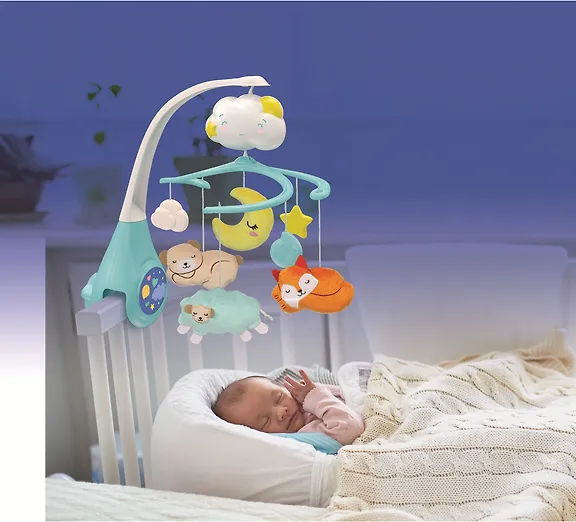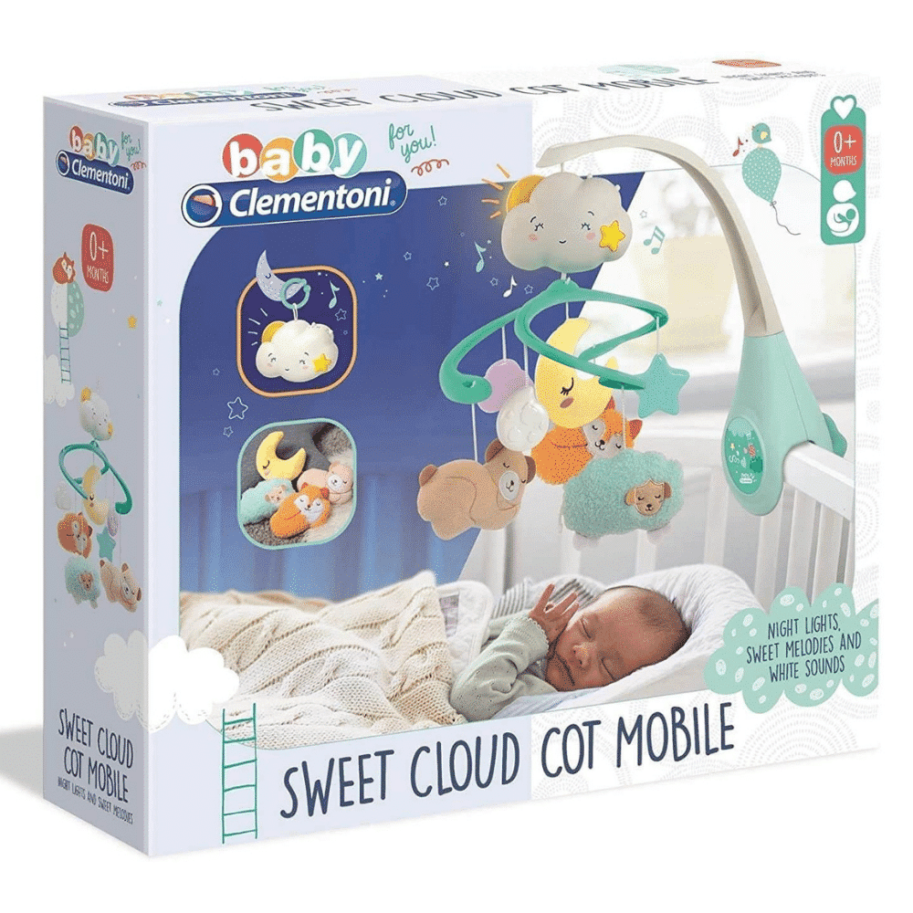 Mobile Clementoni Sweet Cloud auttaa vauvaa rauhoittumaan ja nukahtamaan. Pinnasängyn reunaan kiinnitettävä mobile on sekä soittorasia että univalo.
