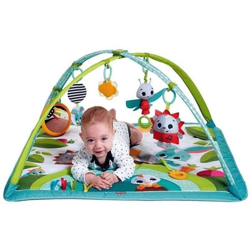 Gymini-puuhamatoissa on värikkäitä leluja eri etäisyydellä ja korkeudella. Matto tarjoaa vauvalle paljon mielenkiintoista katseltavaa ja kuunneltavaa samalla kun eri materiaalit ja äänet stimuloivat hänen aistejaan. Tiny Love Gymini Sunny Day:ssä on neljä jännittävää lelua, joissa jokaisessa on eri toiminto. Pirteä aurinko soittaa kolmea eri sävelmää. Lisäksi matossa on peili, josta lapsi voi tutkia kuvaansa vatsallaan ollessa. Mattoa voi muunnella ja täydentää Tiny Smarts – sarjan lisäleuilla. Matto-osa on konepestävä.