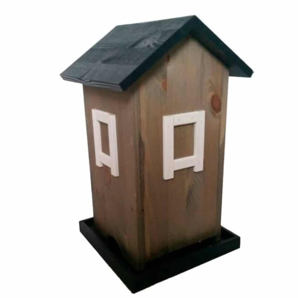 Lintulauta XXL puinen harmaa, jonka sisällä on välisenä, joten voit samanaikaisesti ruokkia lintuja kahdella eri siemenellä. Lintulaudan koko on 25 x 25 x 45 cm. Lintulautaan mahtuu sisälle 10 litraa siemeniä.