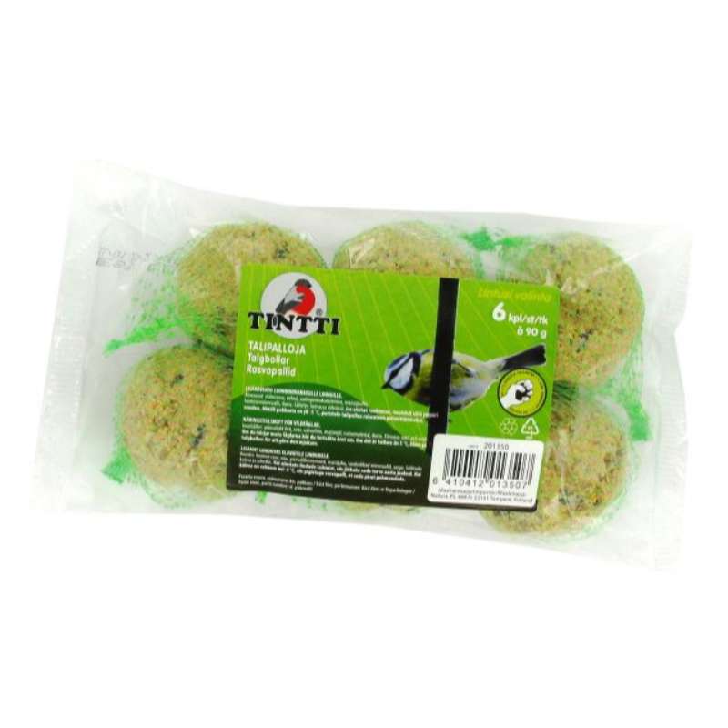 Verkolliset talipallot on helppo laittaa oksille tai syöttimeen. Talopalloissa on paljon energiaa, jota linnut tarvitsevat kylmällä ilmalla. Jos aloitat ruokinnan, huolehdithan siitä ympäri vuoden.