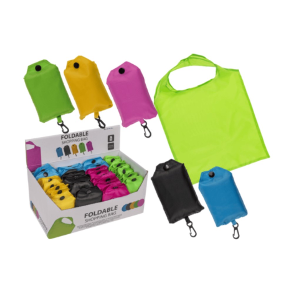 - Käytännöllinen ja kevyt kokoontaitettava ostoskassi kulkee vaivattomasti mukana missä tahansa. Kompakti kassi mahtuu pieneen säilytyspussiin, joka sulkeutuu karabiinilla – kiinnitä helposti avaimenperään, reppuun tai käsilaukkuun. Avoinna kassi on tilava, mitoiltaan noin 39 × 54 cm, ja sopii hyvin päivittäisiin ostoksiin tai mukaan matkalle. Valmistettu kestävästä polyesteristä, joka kestää toistuvaa käyttöä.