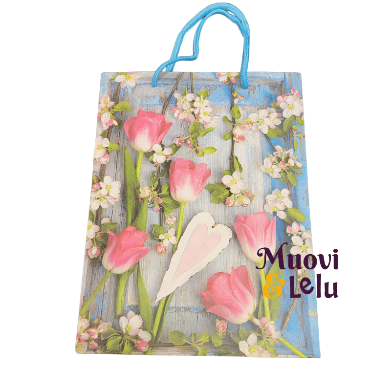 Lahjakassi 24 x 17,6 x 8,7 cm kukkia erilaisia