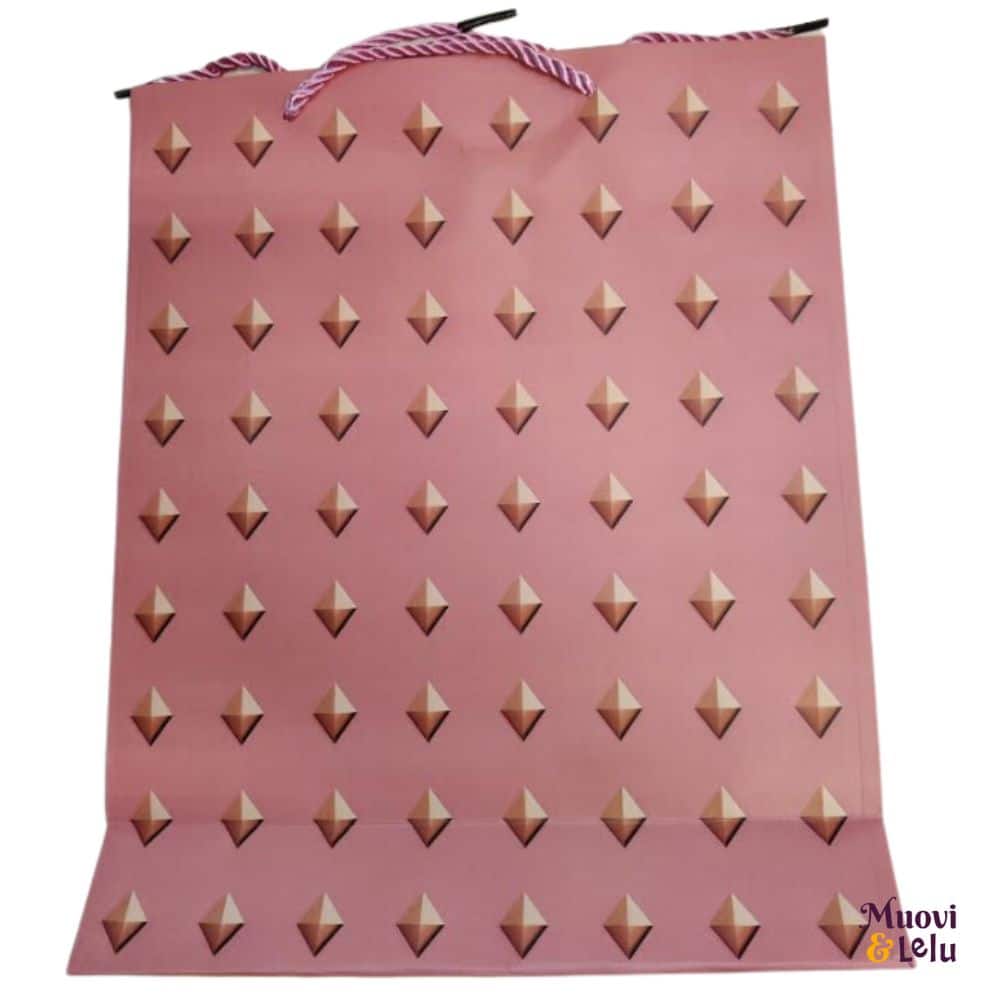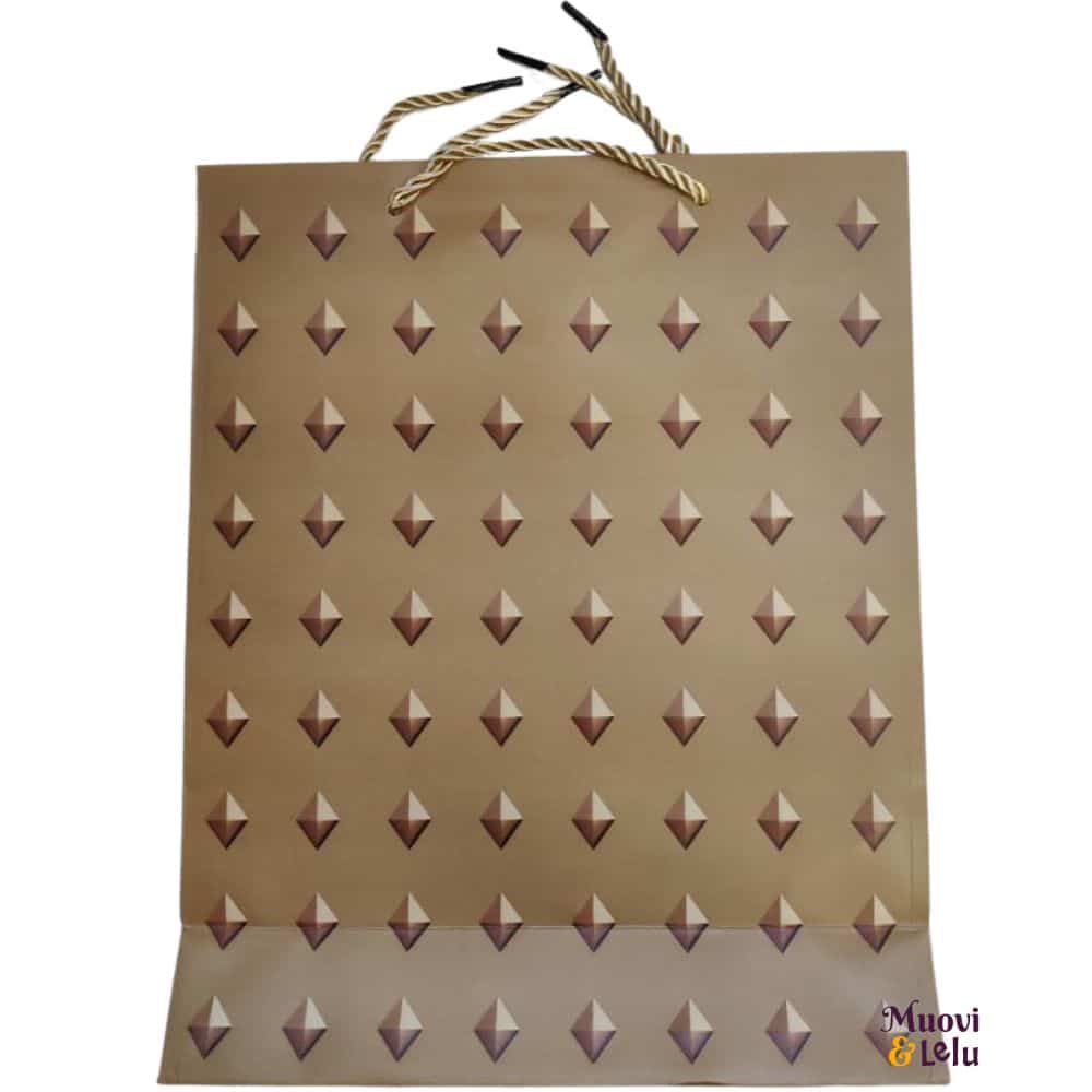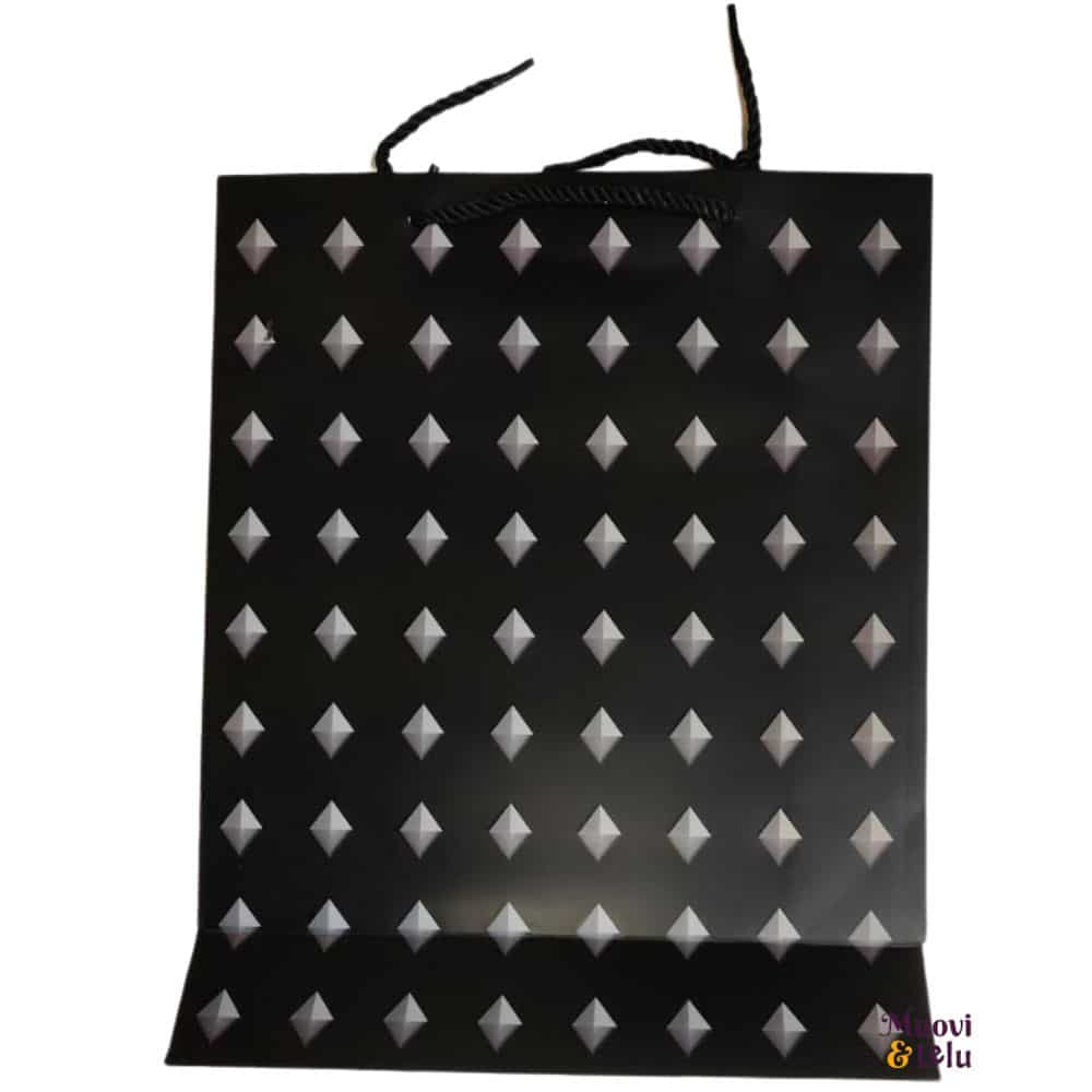 Lahjakassi kiiltävällä timanttikuviolla. Timantit ovat kiiltäviä vain toisella puolella kassia. 4 erilaista.