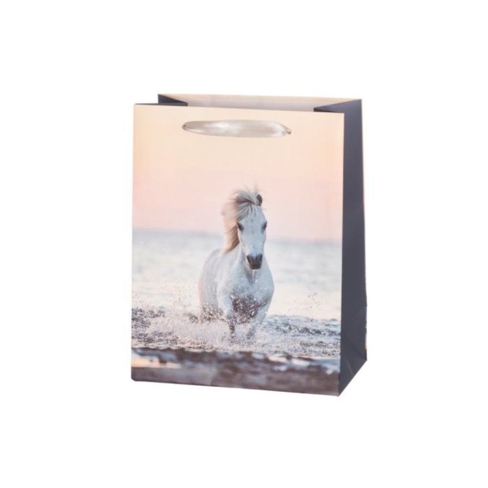 Kassin mitat ovat 18 x 23 x 10 cm, mikä tekee siitä ihanteellisen keskikokoisille lahjoille, kuten kirjoille, leluhevosille, vaatteille tai muille pientavaroille. Kassi on valmistettu laadukkaasta ja tukevasta paperista, joka kestää hyvin lahjan painon. Vahvistetut kantokahvat takaavat helpon ja turvallisen kantamisen.