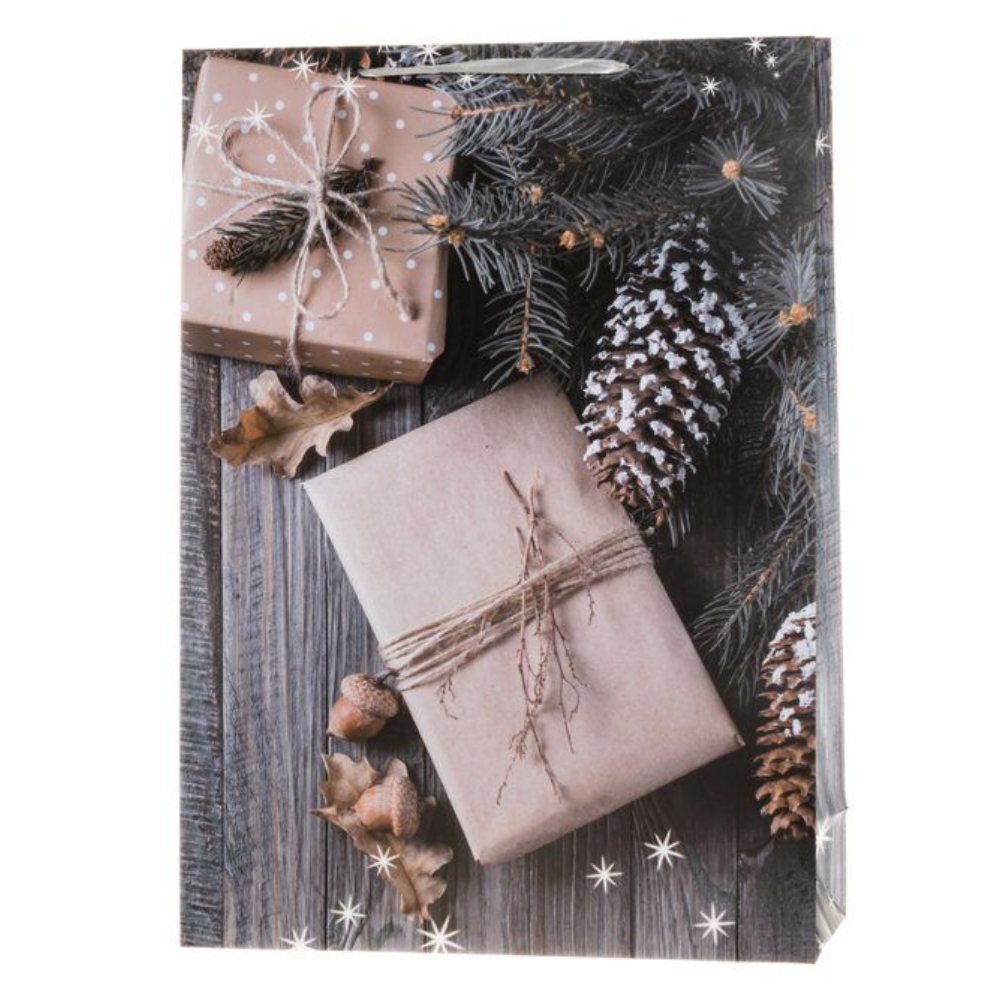 Tämä kauniisti kuvitettu, jouluinen lahjakassi tuo ihanan tunnelman. XXL-kokoisessa paperikassissa on tilaa isommallekin lahjalle.