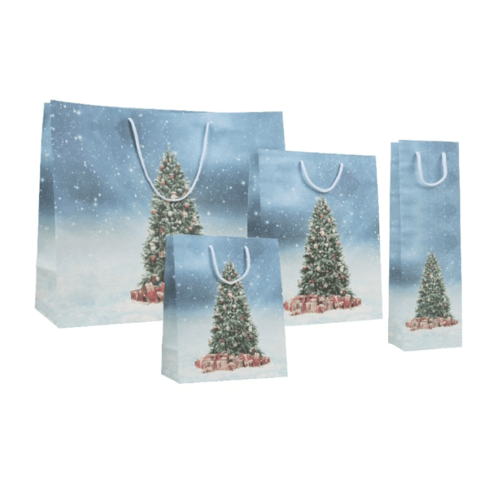 Kestävä joulukassi käännetyllä yläreunalla, pohjapahvilla ja narukannikkeilla