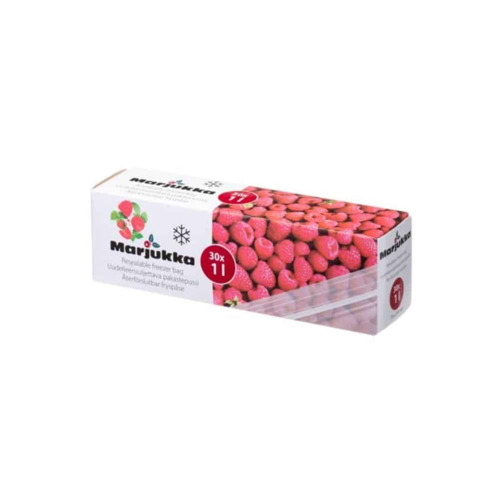 Uudelleensuljettava pakastepussi 1 L. Pusseissa kirjoitusalue. Käyttölämpötila: -40°C – +75°C. Pussin koko 17,80 x 21 cm.