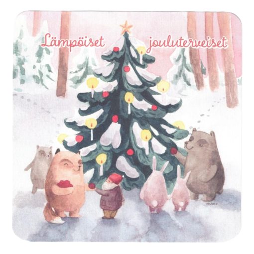 Ilahduta kaveria tai sukulaista kauniilla joulukortilla! Kortin pehmeä ja rauhallinen kuvitus tuo takuulla joulutunnelman. Satumaisissa kuvissa on tonttuja ja söpöjä metsäneläimiä lumisissa maisemissa, sekä muita jouluisia aiheita.