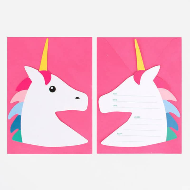 Ihanat kutsukortit yksisarvinen-teeman juhliin. 8 kpl pakkauksessa. Sisältää kaksipuoleisten, muotoon leikattujen korttien lisäksi vaaleanpunaiset kirjekuoret ja teemaan sopivat sulkijatarrat.