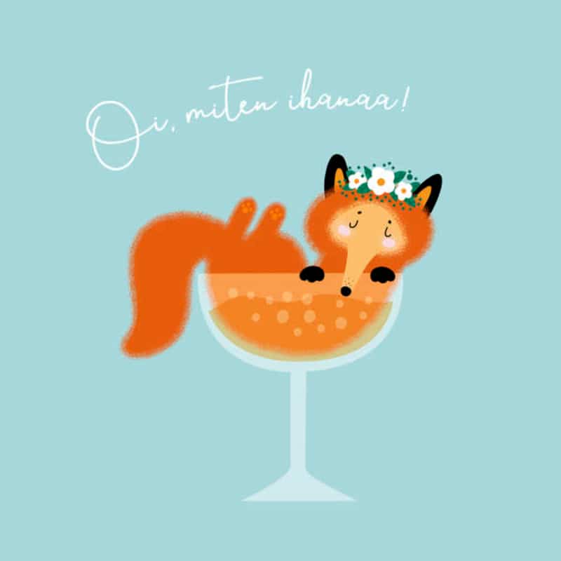 Onnittelukortti 1-osainen neliö kettu lasissa