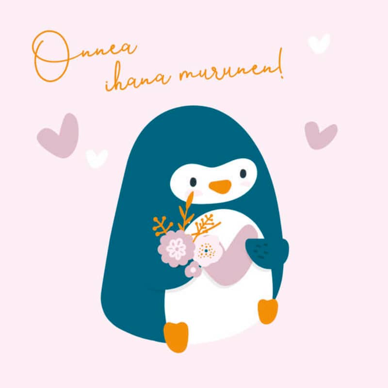 Onnittelukortti 1-osainen neliö pinviini glitter Linnapaperi